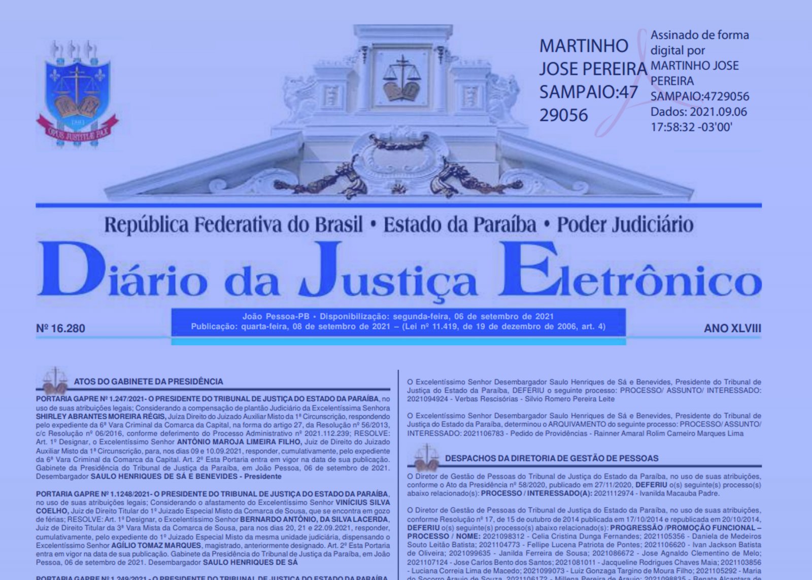 DJE publica ata de impugnações às audiências de reescolha de serventias extrajudiciais da Paraíba